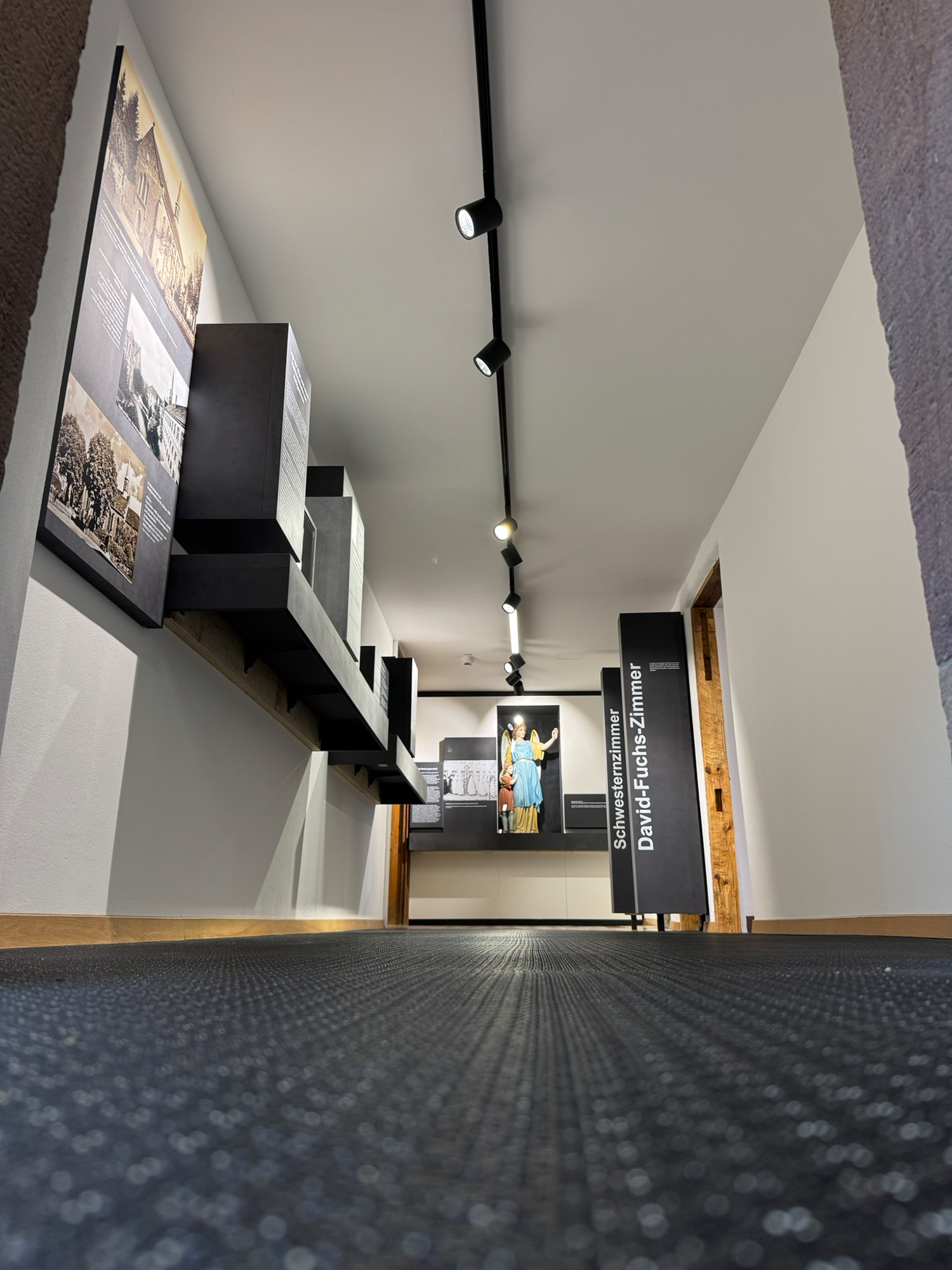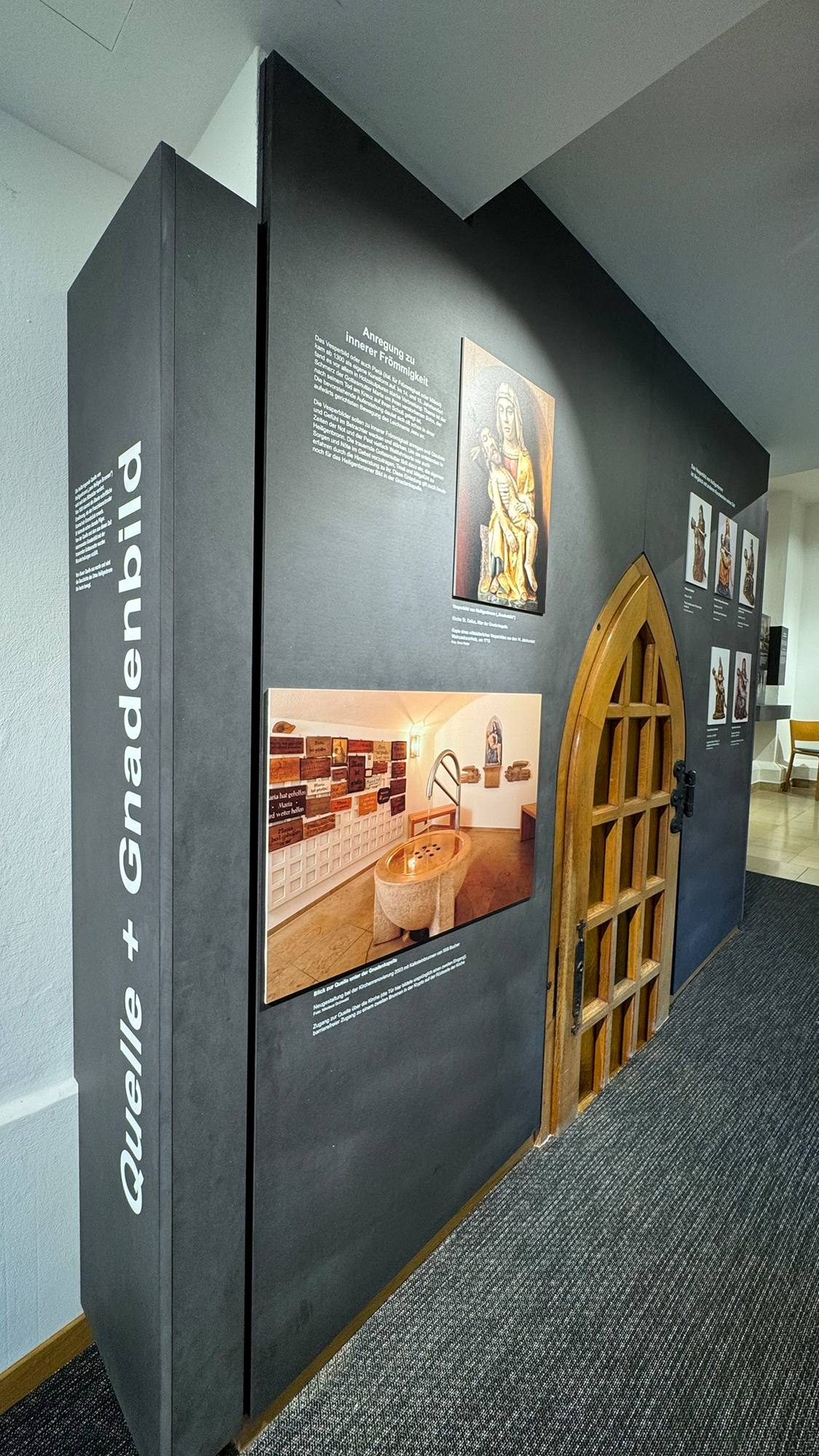 Bis zum 30.11. läuft der Förderantrag für die Umsetzung der Historischen Ausstellung „Eine Quelle, die bewegt“. Am 21.11. wurden jetzt die bedruckten Tafeln eingebaut sowie die Podeste für die Figuren in den Fensternischen. Die Arbeiten sind also soweit abgeschlossen, es fehlen nur noch ein paar Kleinigkeiten.