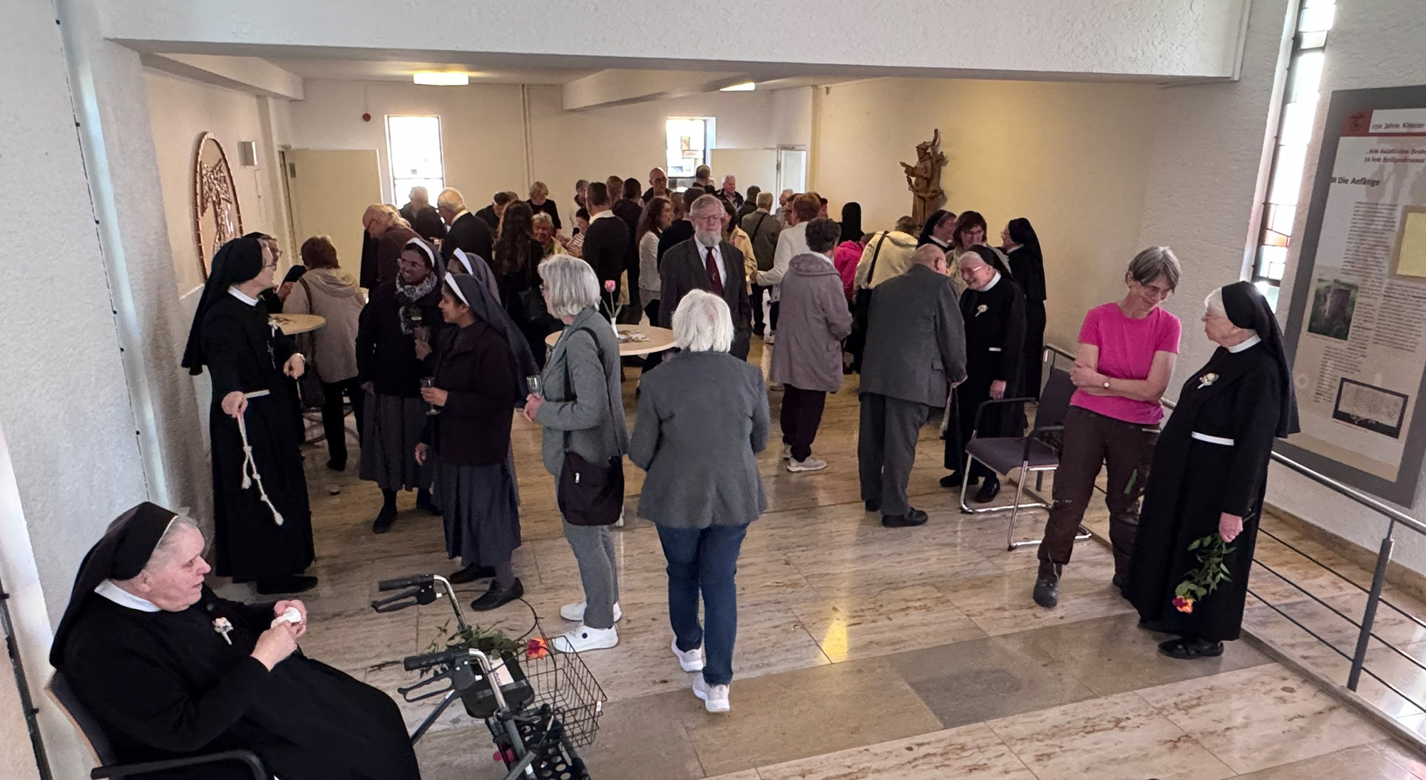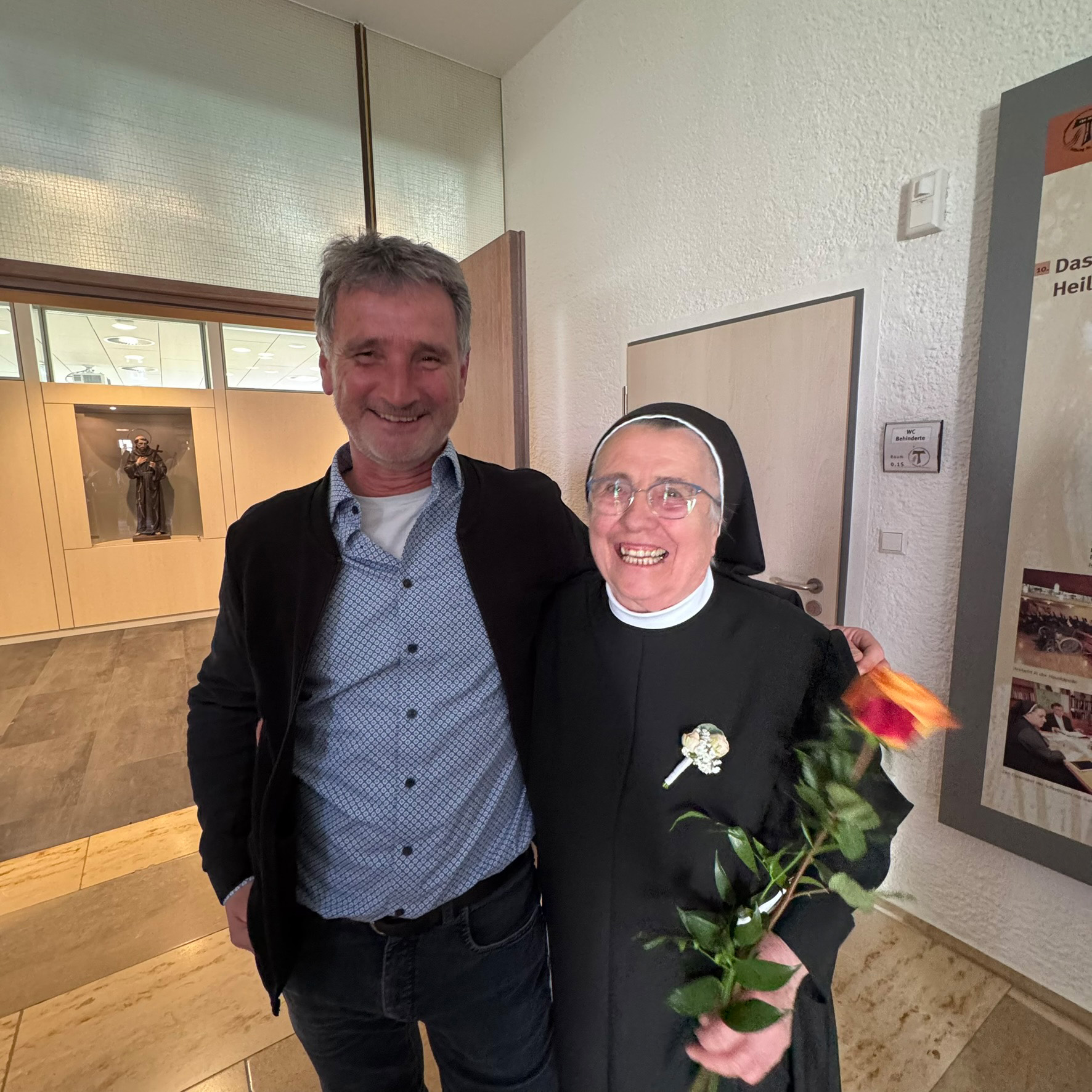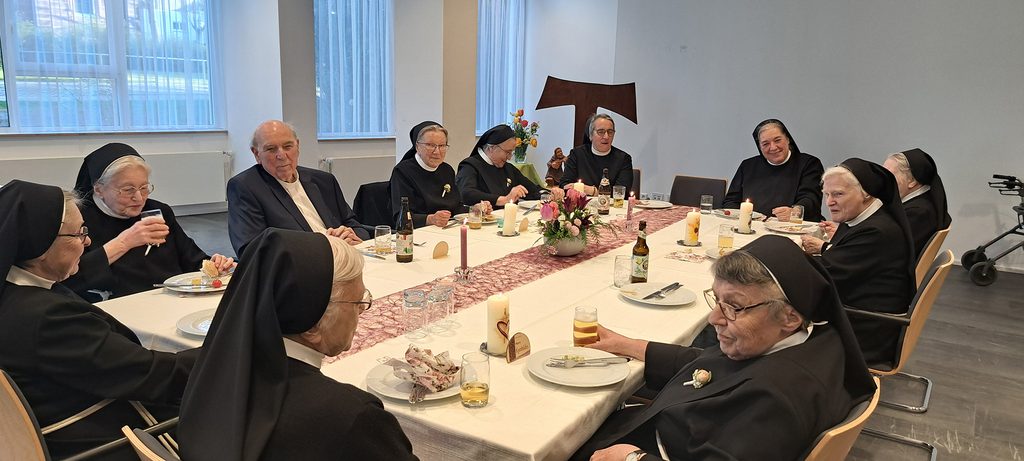 Der Tag begann mit einem Festgottesdienst in der Hauskapelle. Generaloberin Sr. M. Dorothea begrüßte die Gäste und freute sich über die rege Teilnahme von Familienangehörigen, Weggefährten und Weggefährtinnen und viele Mitarbeitende aus der Stiftung St. Franziskus.