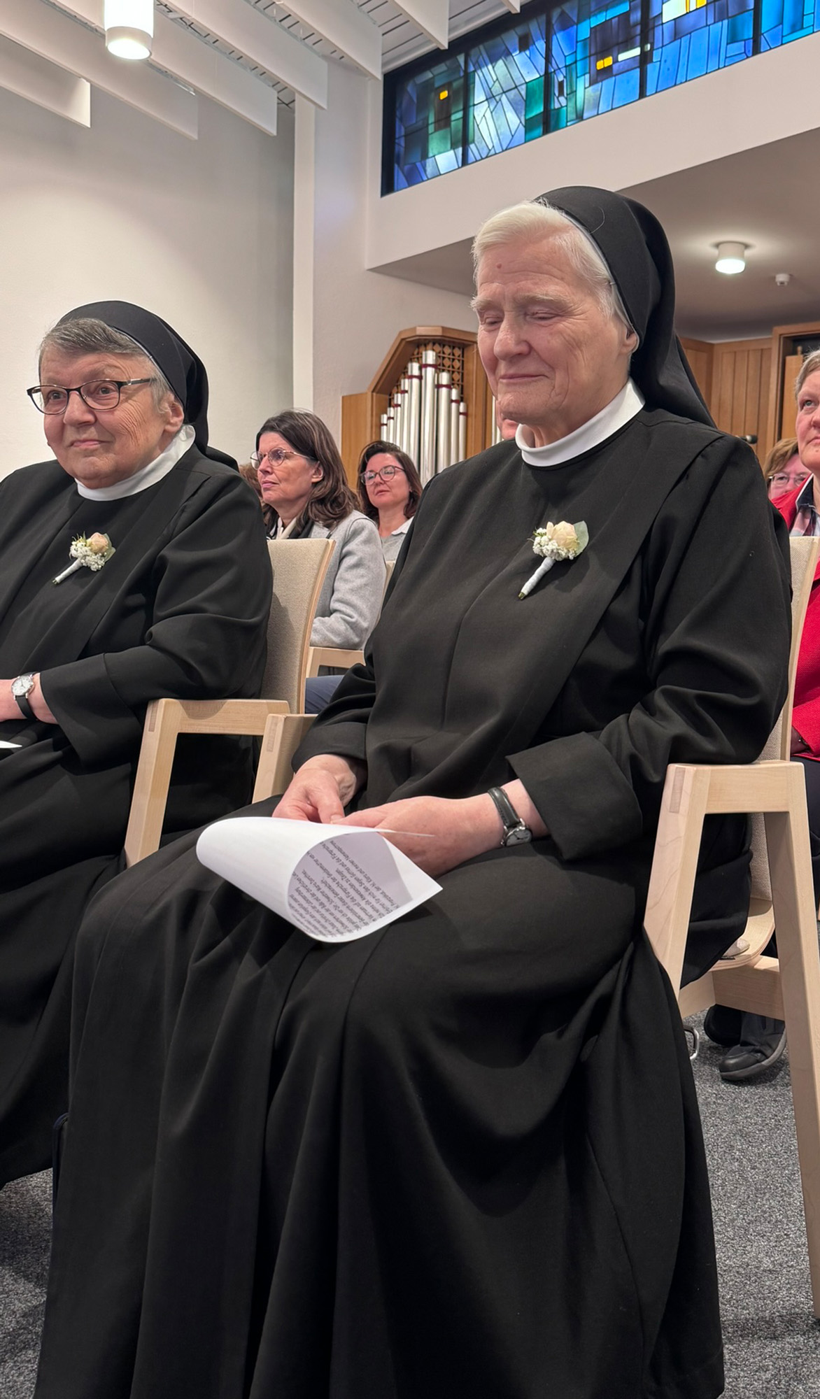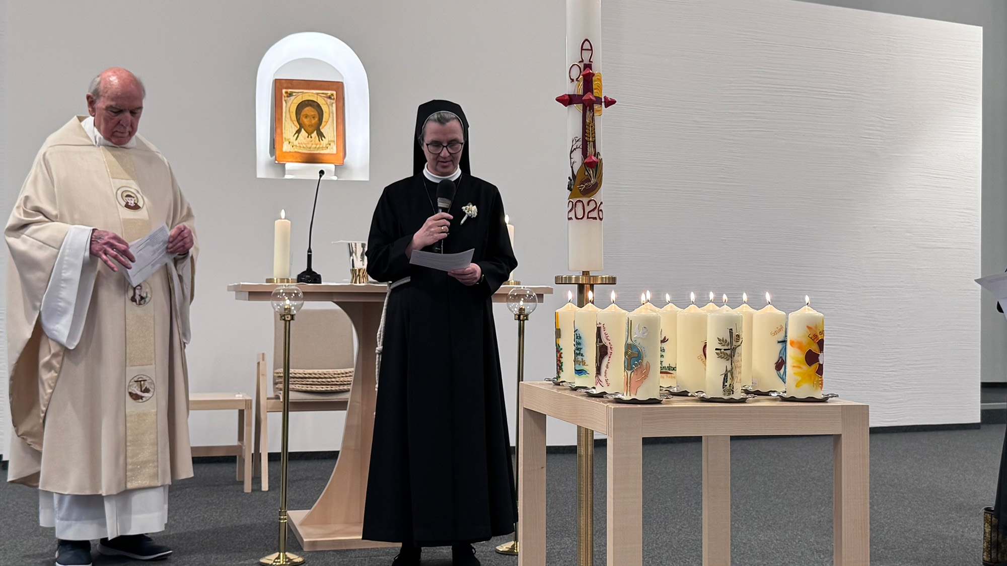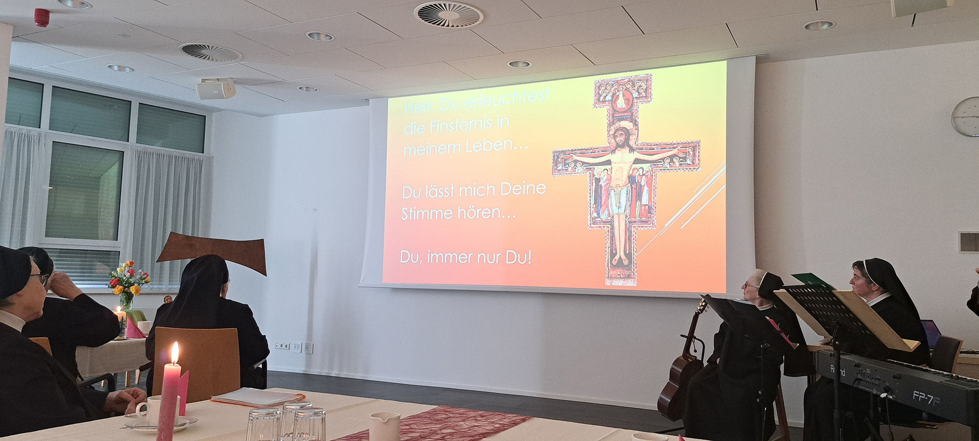Der Gottesdienst wurde festlich umrahmt von einer Schwesternschola (Sr. Magdalena, Sr. Anna-Franziska, Sr. Johanna) und von Rudi Schäfer (Orgel) und Konrad Gießibl (Gesang und Violine).